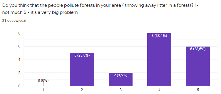 W projekcie cały czas poruszany jest temat ochrony środowiska. Tym razem grupa projektowa opracowała pytania do ankiety dotyczące problemu zanieczyszczenia zarówno powietrza jak i i lasów, okolic. Następnie udzielali oni odpowiedzi na pytania, aby wyłonić największy problem w Koszęcinie.