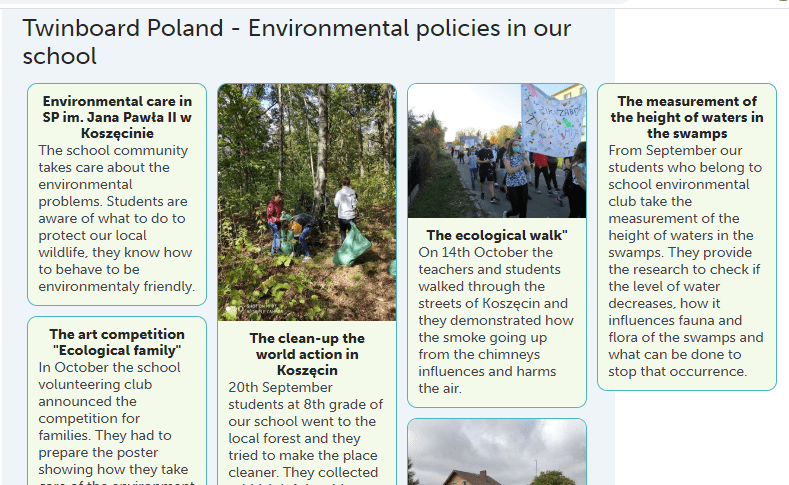 Rośnie świadomość ludzi na temat naszego środowiska. Wszyscy staramy się troszczyć czystość okolicy, segregujemy śmieci, oszczędzamy energię elektryczną i wodę. Każdy z nas ciągle zastanawia się co jeszcze możemy zrobić, aby zadbać o środowisko. I właśnie w tym zadaniu uczniowie dzielą się swoimi obawami, możemy porównać nasze problemy i podzielić się swoimi doświadczeniami w ich rozwiązywaniu.